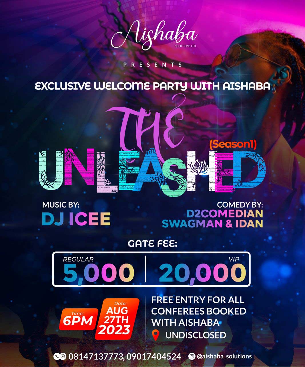 Contact: 08147137773 or 0901 740 4524 to book your spot at ‘THE UNLEASHED’ – Season 1, the exclusive welcome party by Aishaba Ltd during NBA Annual General Conference 2023 (NBAAGC2023). Don’t miss out on this unforgettable experience!