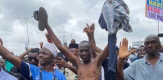 N*ked Man Joins #EndbadgovernanceinNigeria Protest In Lagos, Sings “Solidarity Forever”