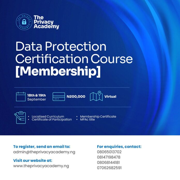 The Privacy Academy, a renowned institution specializing in data protection education, is proud to announce its upcoming Data Protection Certification Course, set to take place on September 18th and 19th, 2023. This virtual course, priced at N200,000, offers participants not only a comprehensive education in data protection but also exclusive membership benefits.