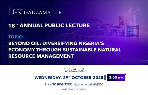 J-K Gadzama LLP has announced that the 18th edition of its Annual Public Lecture will hold virtually on Wednesday, October 29, 2025, at 3:00 pm.