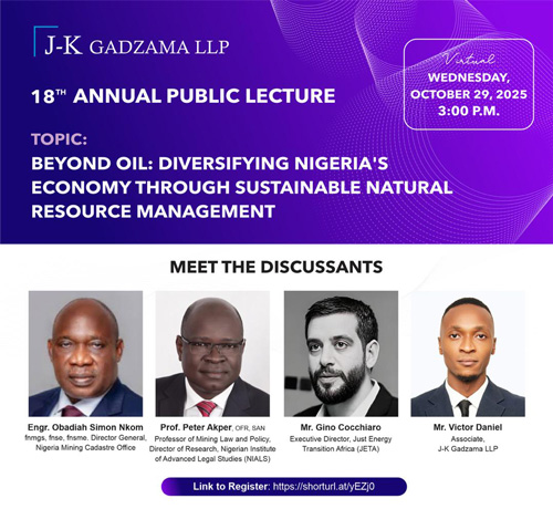 J-K Gadzama LLP has announced that the 18th edition of its Annual Public Lecture will hold virtually on Wednesday, October 29, 2025, at 3:00 p.m.