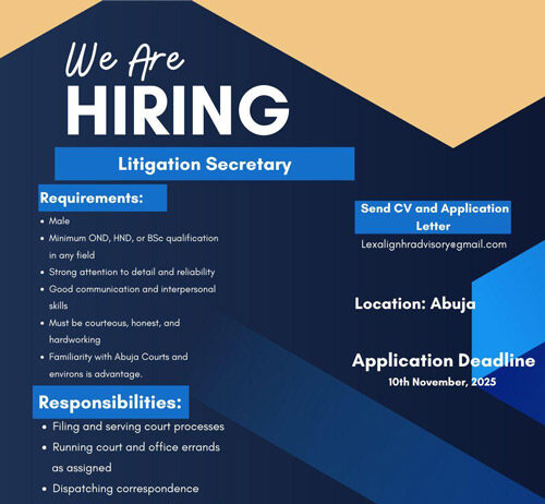 Lexalign HR Advisory Seeks Litigation Secretary In Abuja – Apply By September 30, 2025