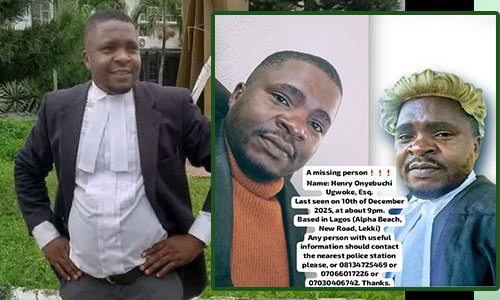 Concern Grows As Lagos-Based Lawyer Henry Onyebuchi Ugwoke Reported Missing Since December 10 — Friends, Colleagues Launch Search Effort