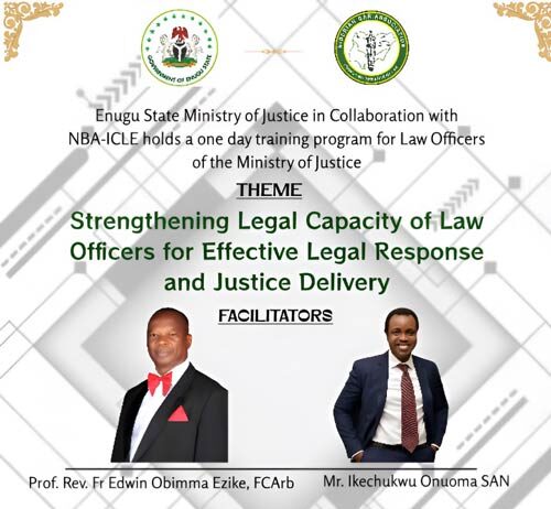 Enugu Ministry Of Justice, NBA-ICLE Hold Training On November 27 To Strengthen Legal Capacity Of Law Officers