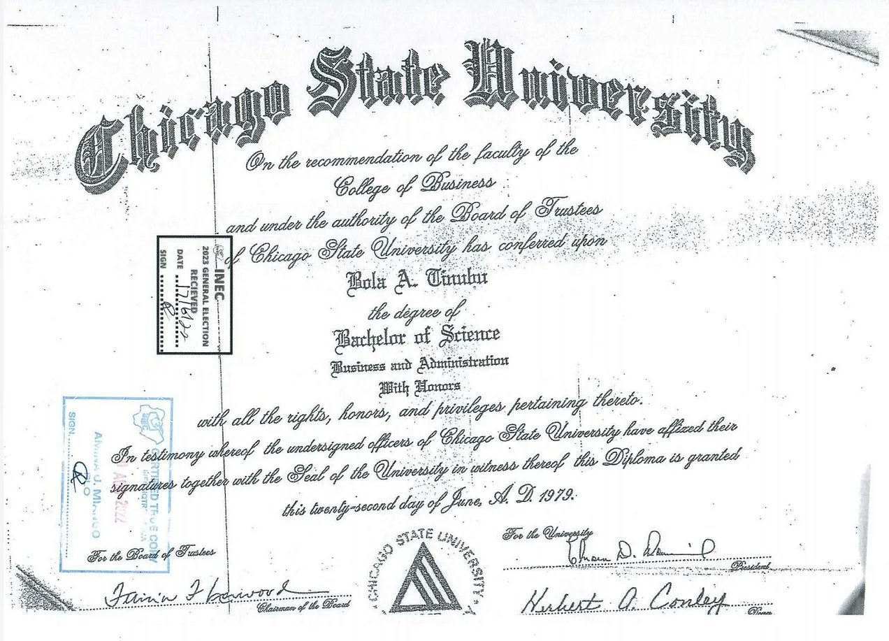 A careful look at the documents showed that the certificate which Tinubu submitted to the Independent National Electoral Commission (INEC) is different from the certificates CSU issued in 1979. Tinubu, who had previously claimed to have lost his original certificates, presented a replacement of his CSU diploma to INEC.