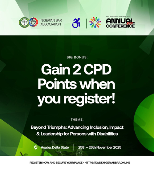 The Nigerian Bar Association (NBA) Lawyers With Disabilities Forum (LWDF) has unveiled plans for its 2025 Annual Conference, themed “Beyond Triumphs: Advancing Inclusion, Impact & Leadership for Persons with Disabilities.”