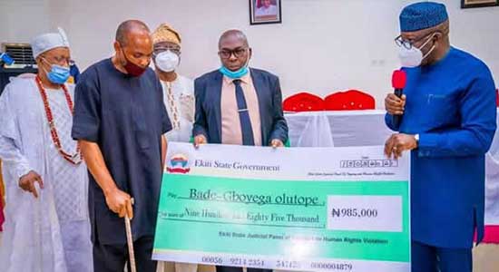 While presenting the cheques to the victims of police brutality in Ado Ekiti, Fayemi said his government decided not to wait for six months’ expiration given the judicial panel of inquiry before starting payment to instill confidence in governance.