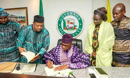 Governor Abiodun signed the Bills in the presence of the Speaker of the State House of Assembly, Hon. Olakunle Oluomo and all other members of the State Assembly at a meeting held at the Governor’s Office, Abeokuta.