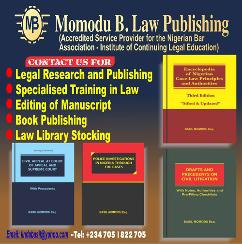 He has also contributed to public enlightenment through his appearances on NTA Channel 10’s “Legal Angle”, a programme devoted to educating citizens on their rights and duties under Nigerian law.