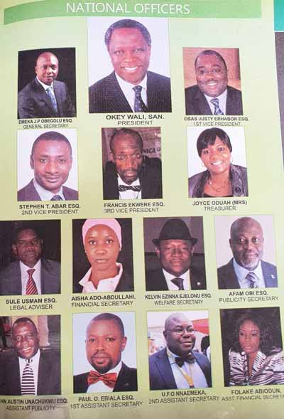 Find attached pictures of National Officers on page 251 of Nigerian Bar Association, Annual Report.
