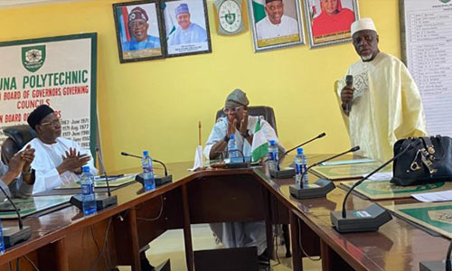 The Chairman stated that in his effort to rhyme with the vision of Kaduna Polytechnic in promoting education he has pledged his sitting allowance to assist the indigent students in the institution, while also he commended the Rector for striving for the development of Kaduna Polytechnic.