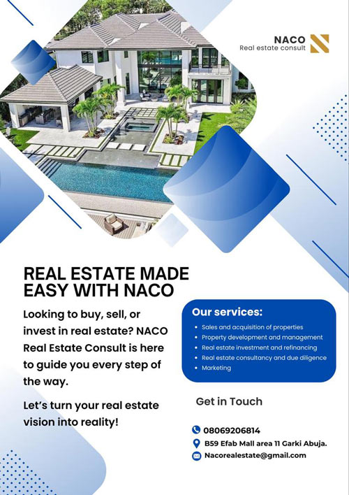Nnanwike Obah, a lawyer and entrepreneur, who serves as the Managing Director and CEO of NACO Logistics, a leading hotel booking company, has officially announced the expansion of his business into the real estate sector, with a primary focus on the vibrant markets of Abuja and Lagos. This exciting development was shared through a recent post on the NACO Logistics website.
