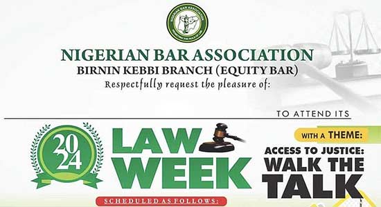 The Birnin Kebbi Branch of the Nigerian Bar Association (NBA) is gearing up to host a highly anticipated “Law Week” event from Sunday, May 26th to Saturday, 1st June, 2024.