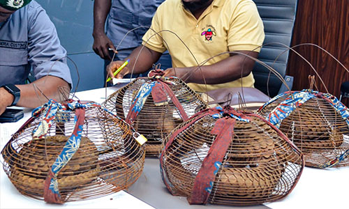 Zakari said that “Upon inspection, officers discovered four pangolins confined in wire mesh cages and concealed within a sack.