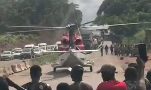 Recall how a video surfaced on social media platforms, where an unidentified passenger made a chopper land in the middle of a highway, after having been stuck alongside others in a traffic between Benin and Ore.