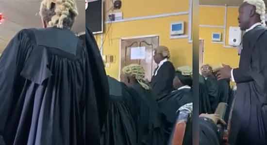 In a video making rounds, sighted by TheNigeriaLawyer, Malcolm Omirhobo who had been making appearance in Courts at different levels dressed in his religious attire – feathers stuck wig, dowry necklaces and hand beads and leg beads and red wrapper worn underneath his gown – was met with opposition by his learned colleagues who argued that the lawyer had no right to enter appearance before the Court dressed in the manner he was dressed.
