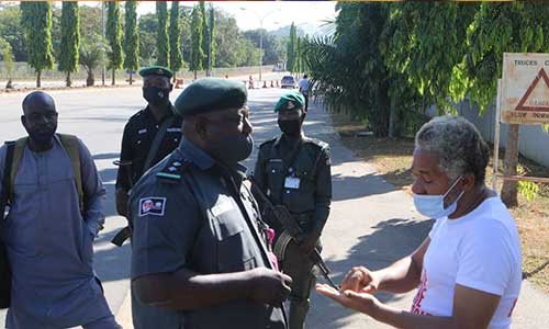 The activist was stopped by the policemen attached to the gate near the Federal Secretariat while heading toward the Presidential Villa.