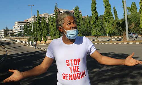 “I am saying it categorically that the government is conniving, conspiring and assisting this crime against humanity, and that is why I am here to protest. I came here now, but the officers are saying that I cannot exercise my rights.”