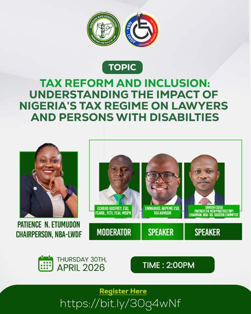 The Nigerian Bar Association is set to convene a virtual session focused on the evolving landscape of tax reform and its implications for legal practitioners and persons with disabilities.