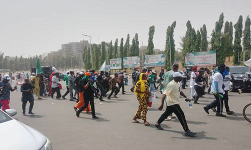 Chaos erupted on Tuesday at the National Assembly when Nigeria Police Force personnel fired teargas at protesters who had gathered to oppose the Senate’s approval of both electronic transmission and manual collation of election results.