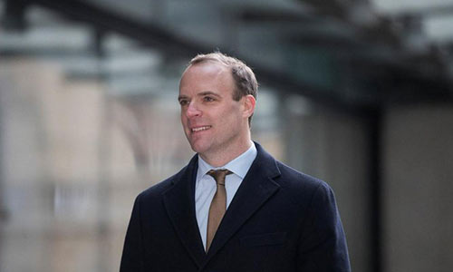 Britain's Foreign Secretary Dominic Raab arrives at the BBC headquarters ahead of his appearance on the Andrew Marr show in London Britain January 5, 2020. REUTERS/Simon Dawson
