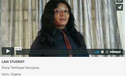 A 300 Level student of the Faculty of Law, University of Ilorin, Miss Famuyiwa Olushola, has won the maiden edition of the International Bar Association (IBA) Vlogging Competition.