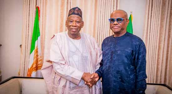 Former governor of Rivers State and current minister-designate, Nyesom Wike, paid an unexpected visit on Tuesday to the National Chairman of the All Progressives Congress (APC), Dr. Abdullahi Umar Ganduje, in Abuja.