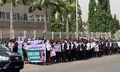 Legal practitioners numbering over 500, acting on the platform of Concerned Lawyers for Probity and Justice, stormed the Federal Ministry of Finance to join a protest by indigenous contractors demanding the payment of an estimated ₦4 trillion for completed capital projects. However, some lawyers on social media said they were not lawyers, not just because they wore white and black, and TheNigeriaLawyer could not verify if they were all lawyers.